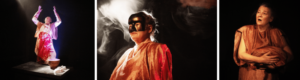 När ADAS teater tillsammans med den prisbelönte regissören Ian Magilton (Roy Hart Theatre) tar sig an Aischylos 2500 år gamla tragedi så är det genom en stark fysisk och vokal gestaltning med nyskriven musik och omslutande ljudbild.